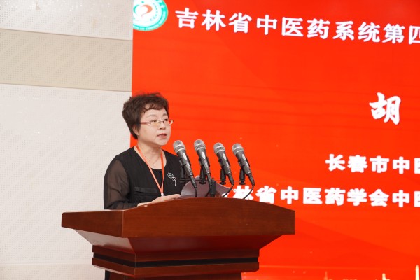 ▲吉林省中医药学会中医急症专业委员会主任委员、长春市中医院急诊科主任胡少红致辞