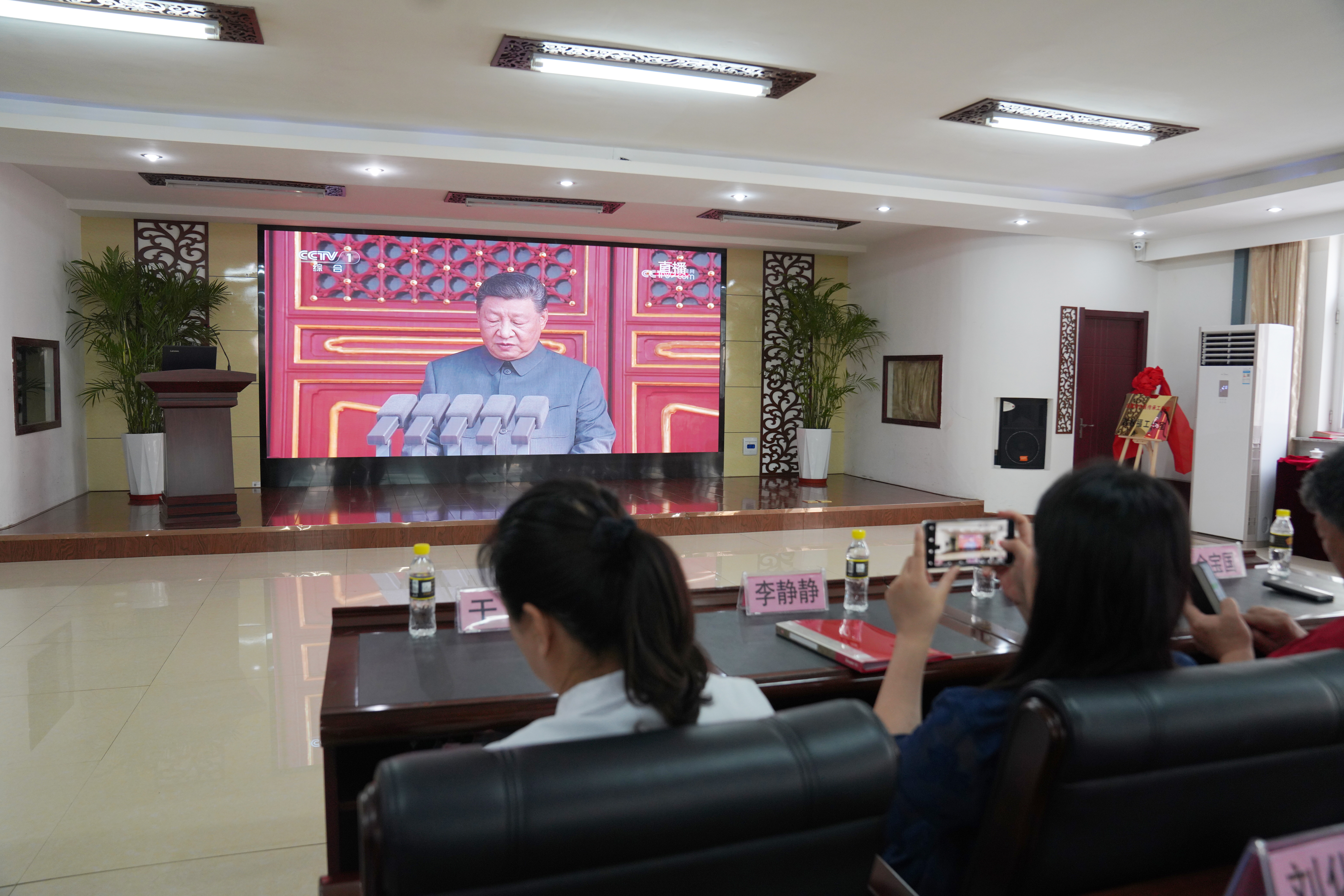 吉林省中医药学会学术部副部长王愉、办公室张杨,来到上级党委:摆渡创新工场党委,与来自摆渡创新工场、摆渡中医药健康产业园工作人员以及双德街道部分居民等30余人共同观看。