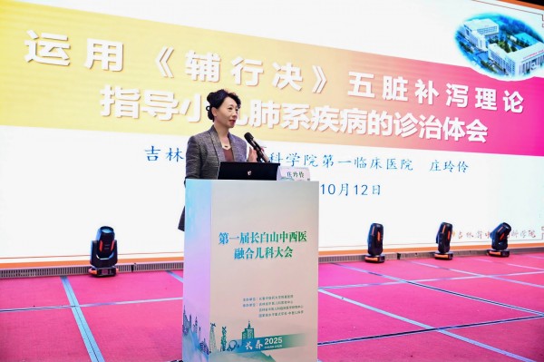 吉林省中医药科学院第一临床医院儿科主任庄玲伶作《运用<辅行决>五脏补泻理论指导小儿肺系疾病的诊治体会》专题报告